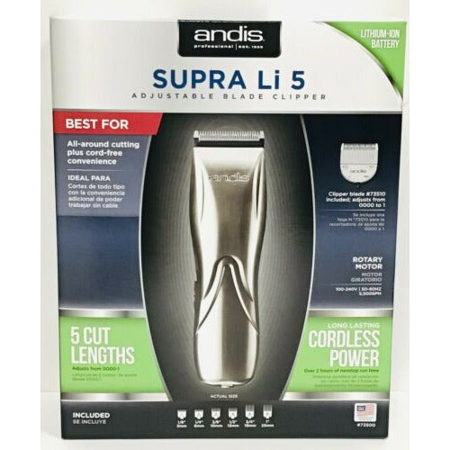 Andis #73500 Supra Li 5 Adjustable Blade Cordless Clipper + 6pc Guide Set