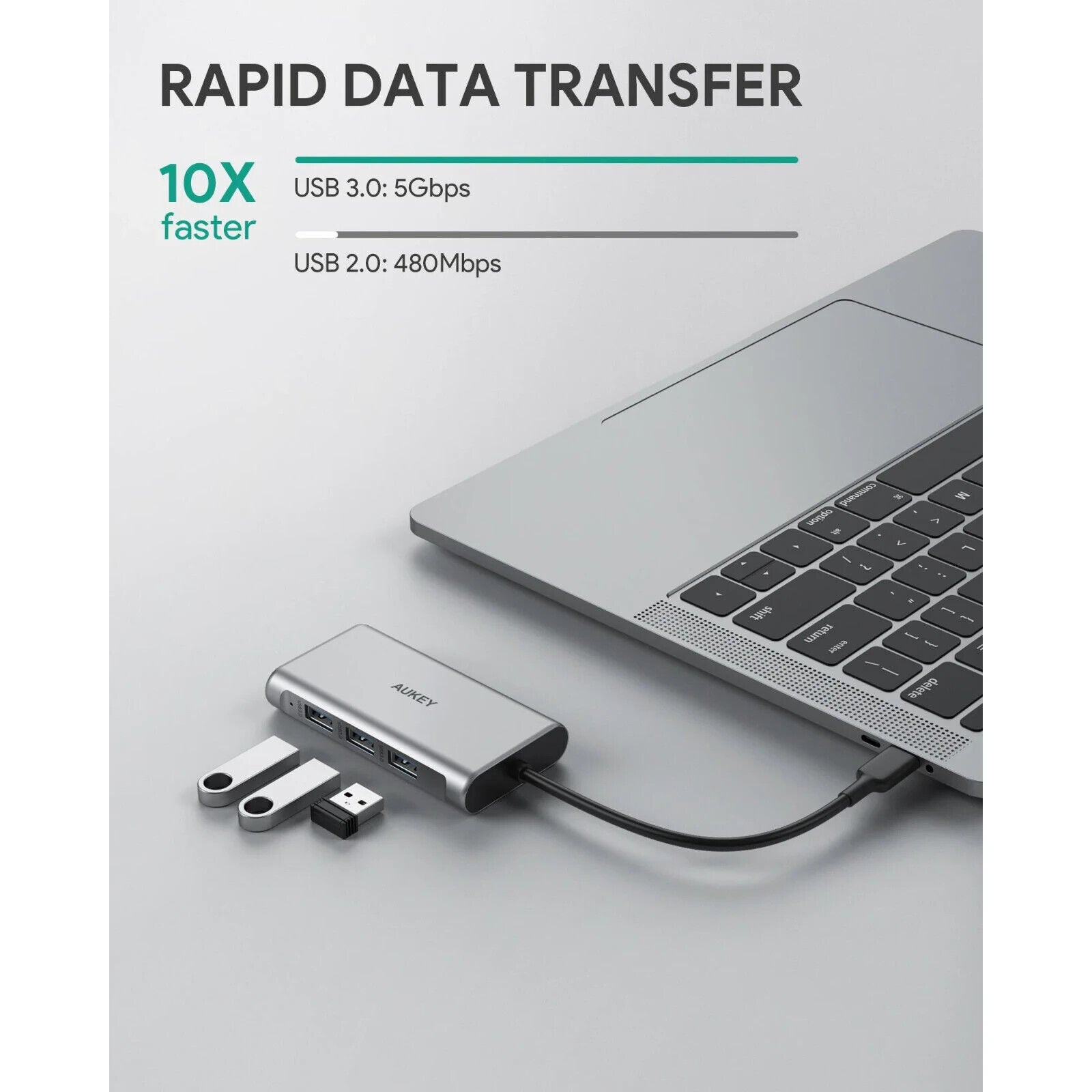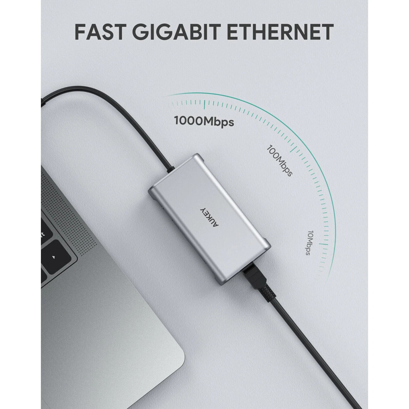 Aukey CB-C91 Link PD Pro USB-C 8in1 Hub Gigabit Ethernet Port Silver