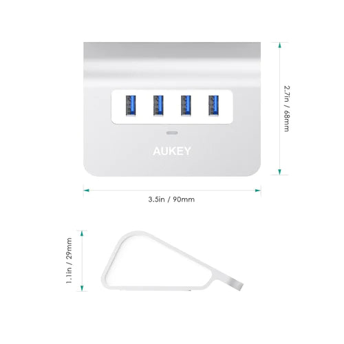 Aukey CB-H5 4-Port USB 3.0 Hub Aluminum Compact & Portable