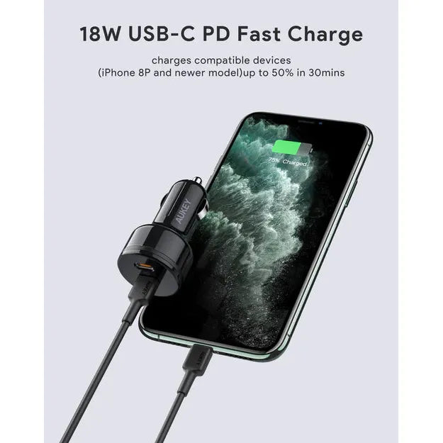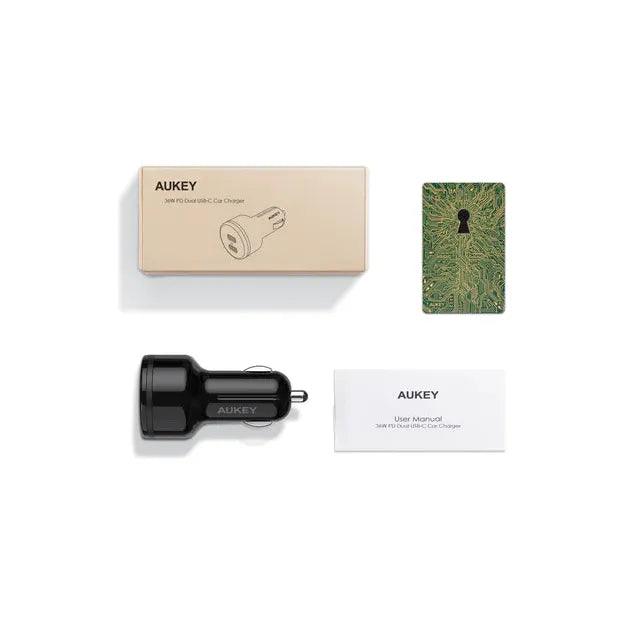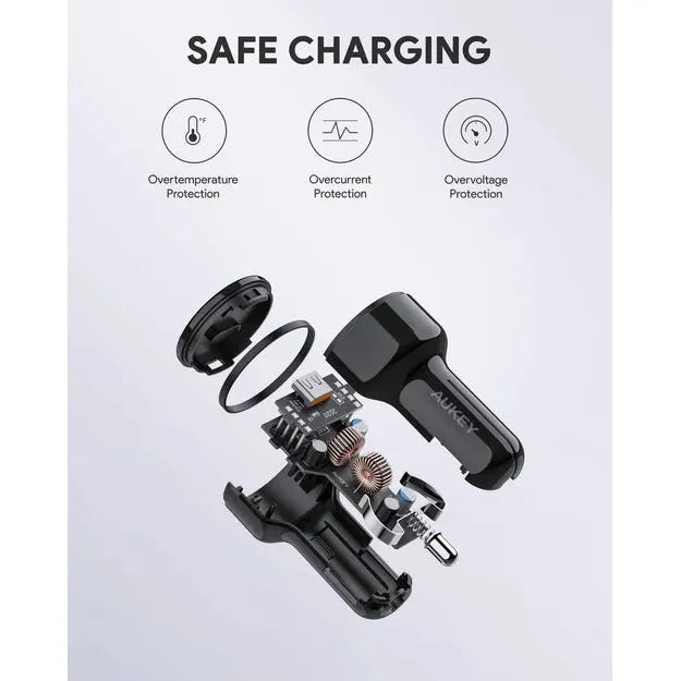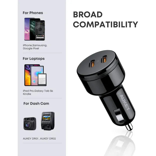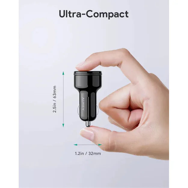 Aukey CC-Y17 36W PD Dual USB-C Car Charger High Speed Charging Ultra Compact