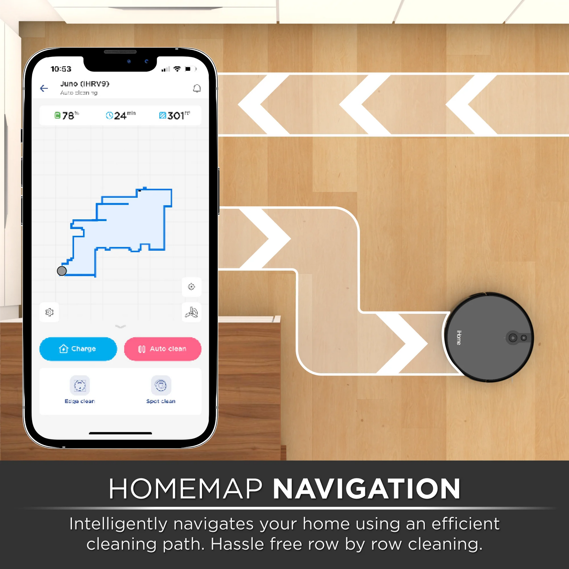 iHome AutoVac Juno Homemap Navigation Scheduled Cleaning 2000PA Suction Power
